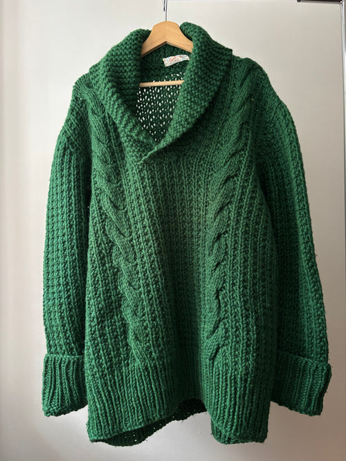 1990s Chunky Handknit Green Sweater | Vintage Heavy Wool Cable Knit Jumper